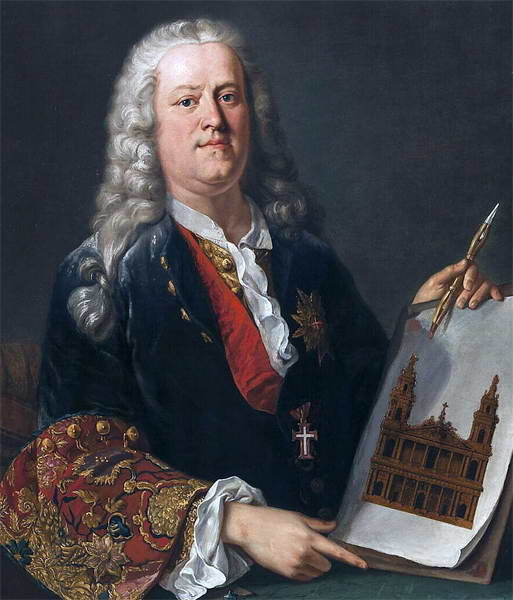 Автопортрет Джованни Николо Сервандони с изображением фасада церкви Сен-Сюльпис. 1736 г.