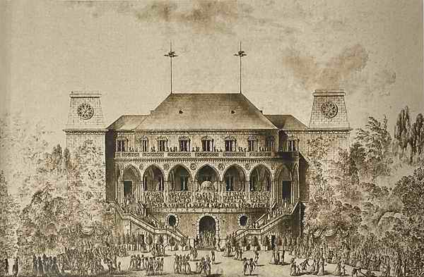 В 1774 г. на поляне Ла Мюэтт в Булонском лесу открыл свои двери Ранелаг – бальный зал, где помимо танцевальных вечеров, на которые ходила в основном «чистая» публика, устраивались также театральные представления и концерты, собиравшие самую пеструю аудиторию. Названием своим этот зал был обязан английскому лорду Ранелагу, соорудившему в 1750 г. в своем поместье Челси близ Лондона ротонду для публичных концертов.