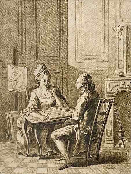 Игра в дамки. Гравюра Л. М. Бонне по картине Ле Клера. XVIII в.