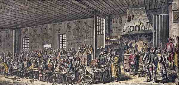 Множество питейных заведений действовало и в самом Париже. В 1780 г. их насчитывалось около 4800, из них примерно 2000 торговали вином, а остальные – прохладительными напитками вроде лимонада. Однако трактирщики, державшие свои заведения в тесных городских кварталах и вынужденные включать в стоимость вина пошлину на его ввоз в столицу, не могли конкурировать с владельцами просторных, дешевых и веселых пригородных кабачков.