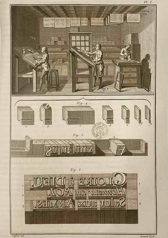 Типография. Работа наборщиков. Иллюстрация из «Энциклопедии» Дидро и Д’Аламбера 1768 г.