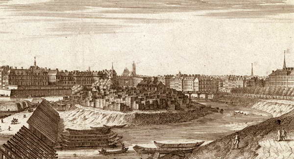 Дровяные склады на острове Лувье. Эстамп. 1736 г.