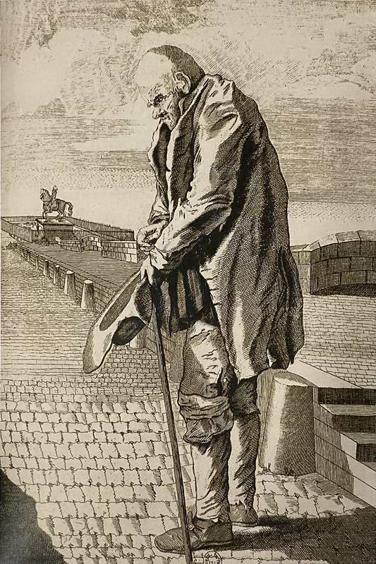 Нищий на Новом мосту. Эстамп. Около 1750 г.