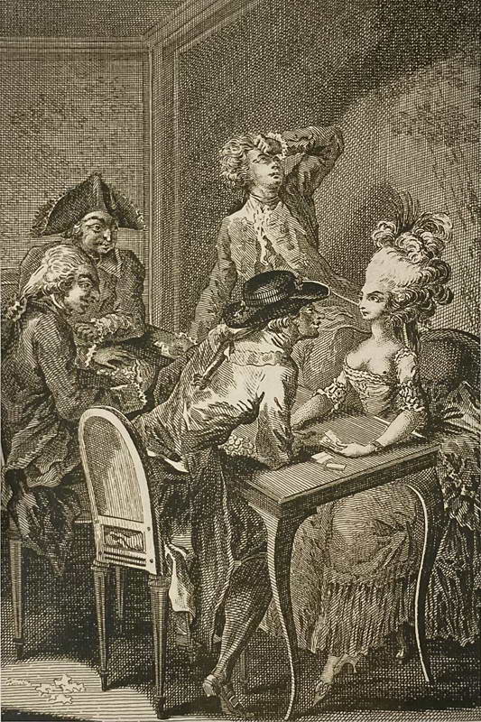 Игорный дом. Иллюстрация Л. Бине к роману Ретифа де ла Бретонна «Совращенная поселянка»