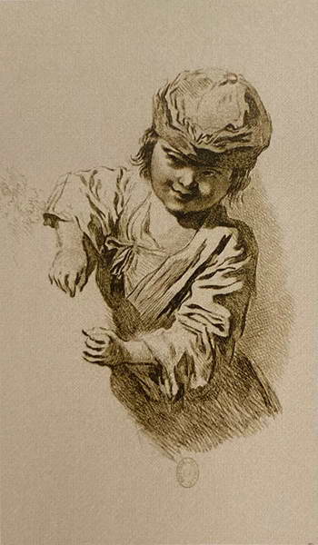 Улыбающаяся девочка в шапочке. Гравюра Ф. Буше по оригиналу А. Ватто. 1726 г.