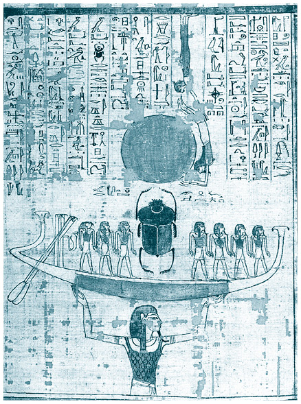 Нун поднимает ладью бога солнца Ра в небо. XI в. до н. э.