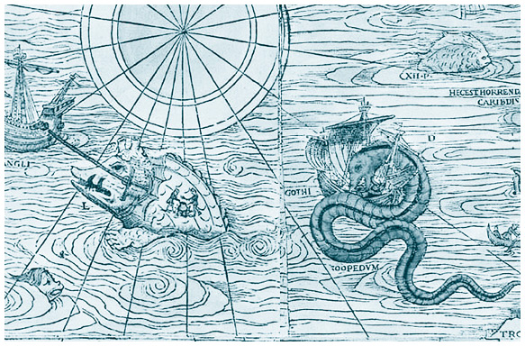 Замысловатые монстры на старинных картах представляют собой прежде всего интереснейшую совокупность иллюстраций ко множеству легенд и мифов, которые были упомянуты в этой книге до настоящего момента. А еще они давно превратились в самостоятельный миф: вопреки расхожему мнению, такими рисунками украшали отнюдь не каждую карту!
