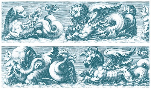 Фриз с морскими чудовищами. Гравюра Теодора де Бри. 1580–1600 гг.