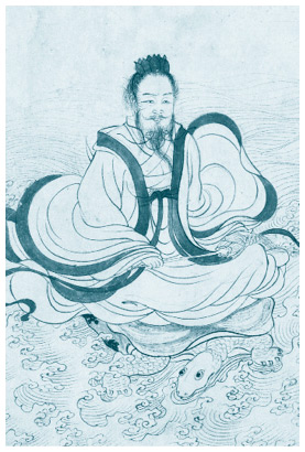 Хэ-бо, «повелитель реки», – древнее божество Хуанхэ, одной из главных рек Китая. Он был химерой, как и многие другие древние боги, и имел хвост рыбы линъюй. По одной из легенд, он превратился в речного духа, поскольку принял особое снадобье (в отличие от древнегреческого Главка, добровольно). По другой же версии, смертный прототип Хэ-бо просто утонул в водах Хуанхэ. Аналогичным образом появилась на свет супруга Хэ-бо, богиня реки Ло24 Ми-фэй, или Ло-шэнь: она была дочерью ранее упомянутого Фу Си и утонула во время переправы. Образ Ми-фэй известен в том числе благодаря посвященному ей стихотворению древнекитайского поэта Цао Чжи (192–232 гг.), в котором есть такие строки: