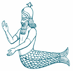 Иногда помимо Оанна упоминается еще один морской муж – древний сирийский бог Дагон (или Даган), чей образ известен благодаря упоминанию в Библии, где он назван «богом филистимлян», и творческому переосмыслению в «Мифах Ктулху», литературной вселенной Говарда Филлипса Лавкрафта, где он стал одним из грозных и непостижимых Древних богов. Историк и археолог Итамар Зингер указал, что представление о Дагоне как об амфибии или химере основано на том, что древнееврейское слово «даг» в переводе означает «рыба». Однако это пример так называемой народной этимологии, не опирающейся на неоспоримые свидетельства. Библейский текст – в том числе в синодальном переводе – никоим образом не намекает на то, что Дагон был наполовину рыбой: «И встали они поутру на следующий день, и вот, Дагон лежит ниц на земле пред ковчегом Господним; голова Дагонова и обе руки его лежали отсеченные, каждая особо, на пороге, осталось только туловище Дагона» (1-я Царств, 5:4). Можно согласиться и с выводом Зингера относительно того, что на образ Дагона могли повлиять изображения ранее упомянутой Атаргатис / Деркето. Изображение морского мужа в характерном головном уборе, которое чаще всего связывают с Дагоном, скорее всего, месопотамский монстр Кулулу.