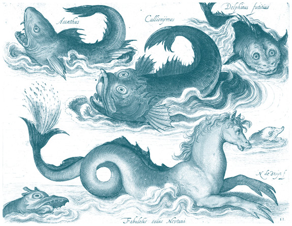 Гиппокамп и другие морские чудища. Гравюра Николаса де Брёйне (1581–1656).
