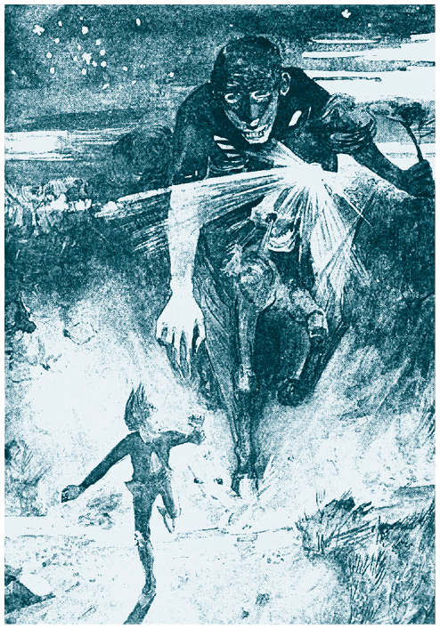 Наклави преследует островитянина. Гравюра Джеймса Торранса.