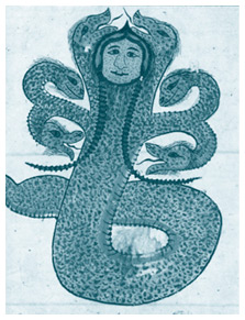 В индуизме и ведизме грандиозных размеров змей, у которого тысяча голов (хотя на различных изображениях их может быть значительно меньше), зовется Шеша. Он представляет собой аватару бога Вишну, охранителя мироздания; в свою очередь, воплощениями Шеши считаются ряд мифических личностей, включая Лакшману, героя эпоса «Рамаяна», и легендарного мыслителя Патанджали. На головах Шеши покоятся все миры вселенной, а сам он обитает ниже Паталы – семи подземных миров, населенных существами демонической природы.