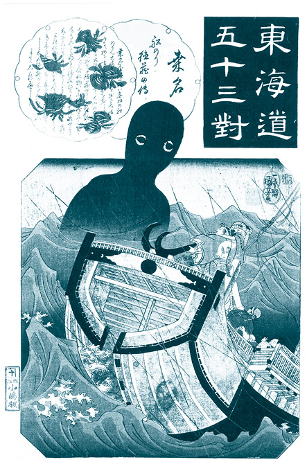 Моряк Токусо и морское чудовище. Гравюра Утагавы Куниёси. 1845 г.