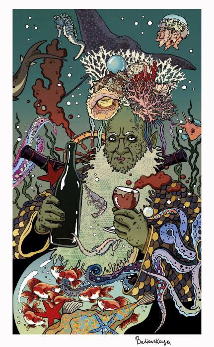Доставили ловкие осьминоги владыке морскому бутыли запечатанные. Взял тот одну бутыль в руки и удивился: напиток что внутри плескался, как будто солнечными лучами создан, а не руками человека – так красив цвет его был.