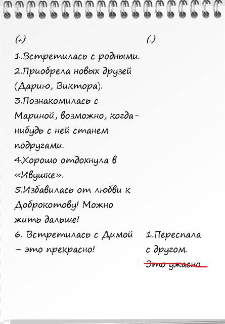 Конечно, это было бы лишним, но долю сомнения подруга всё же в душе́посеяла: я засомневалась в своей правоте, потому зачеркнула в графе «-», предложение «Это ужасно», однако что делать с Димой, не решила.