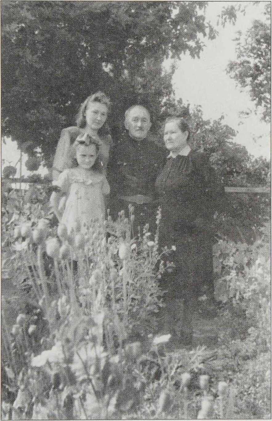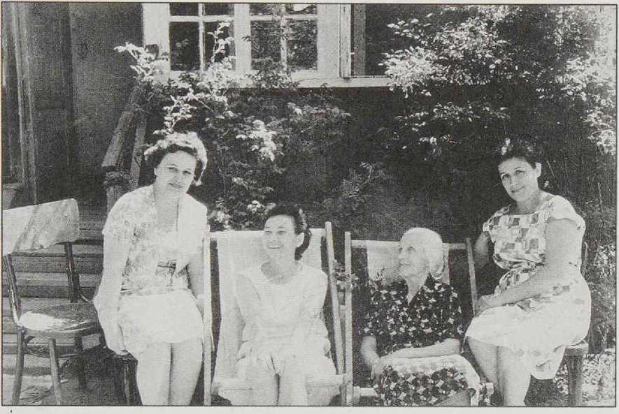 На даче под Москвой. Слева направо: сестра Галины Ивановны Ольга, Галина Ивановна, ее любимая тетя Варвара Михайловна, сестра Лидия. 1964 г.