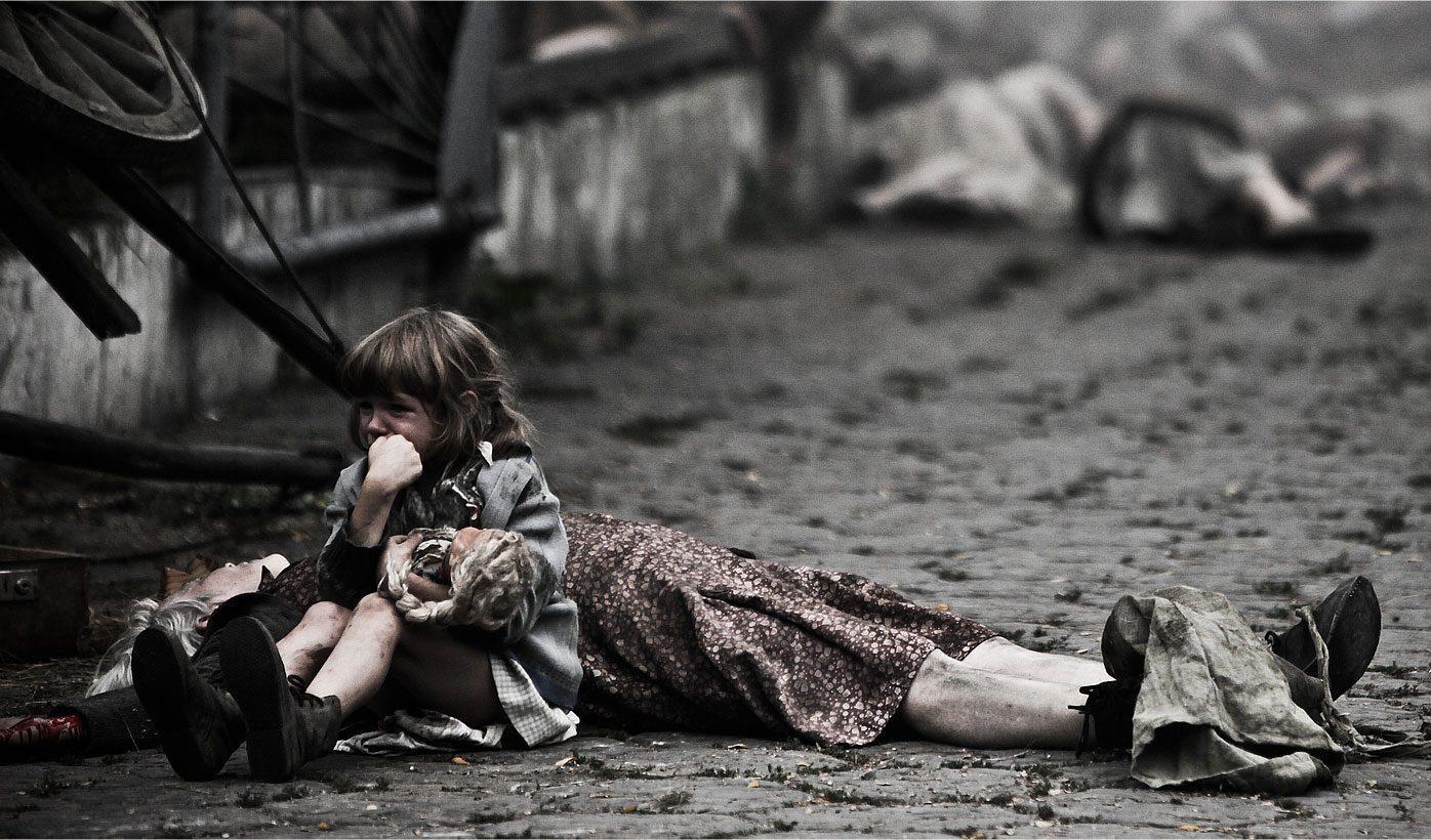 Чувствовалось, что девчушке хочется пить, она облизывала сухие губы и слабо хныкала, но женщина равнодушно брела вперед. Вот мать, совсем обессиленная, упала, а девочка опустилась рядом с ней, плача и тормоша женщину, а раскаленное небо равнодушно освещало эту картину. Так продолжалось долго, но вот очередная картинка-вспышка сменила предыдущую.