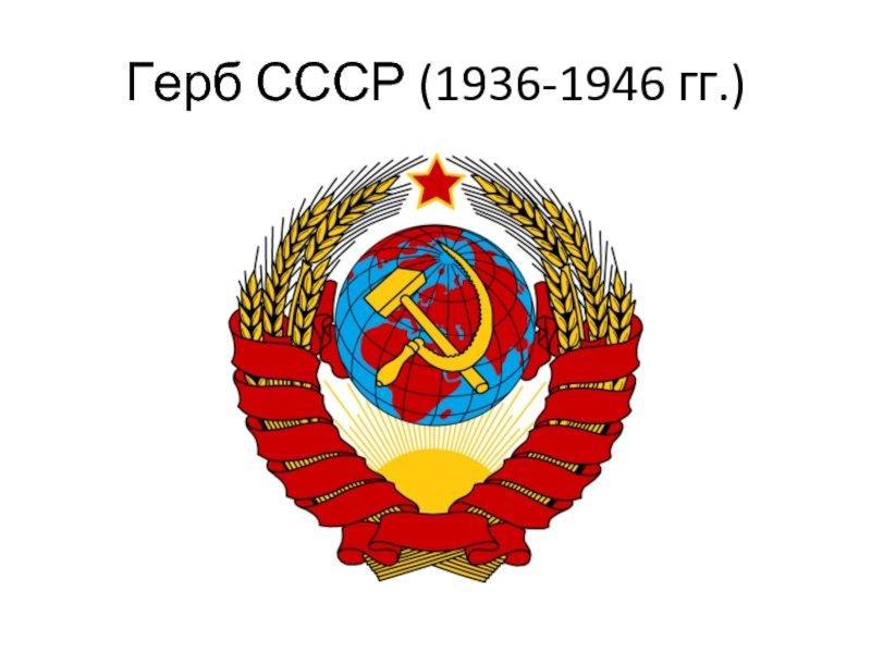 Примечание: В 1936 году была принята новая конституция. Статья 143 описывала герб следующим образом: Государственный герб Союза Советских Социалистических Республик состоит из серпа и молота на земном шаре, изображенном в лучах солнца и обрамленном колосьями, с надписью на языках союзных республик: «Пролетарии всех стран, соединяйтесь!». 11 витков ленты соответствовали числу союзных республик.