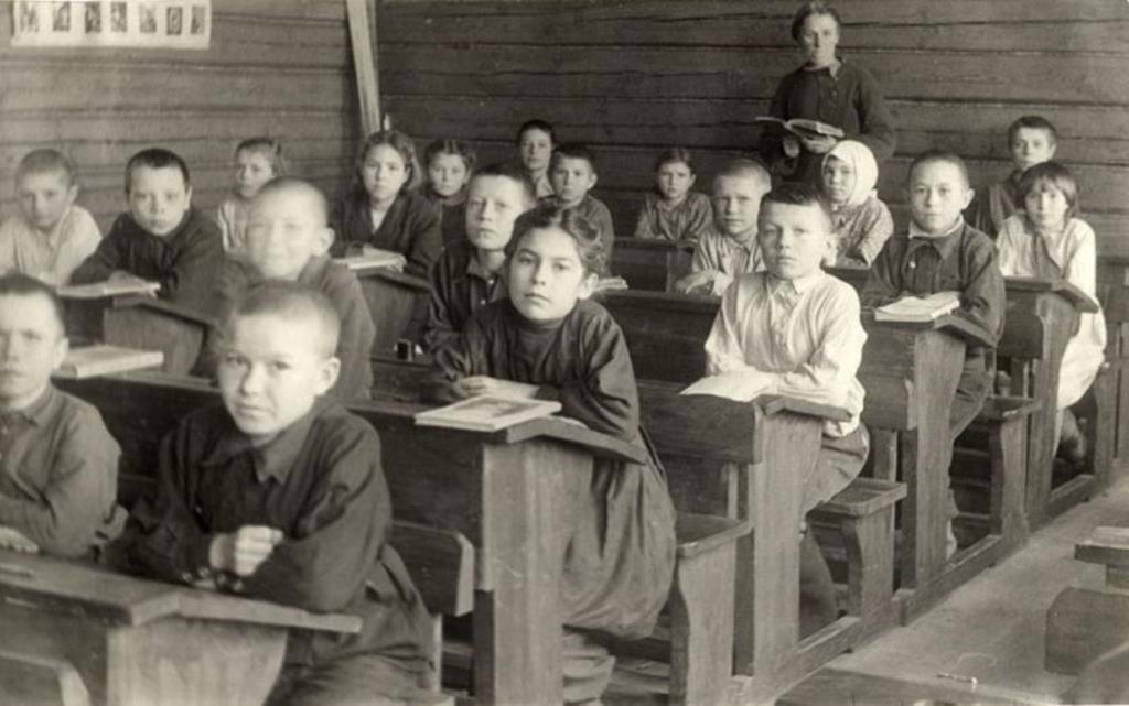 Затем следующая вспышка памяти – теперь девочке около пяти – семи лет, но она по-прежнему худенькая и меньше других детей по росту. Надежда видит ее в классе, в котором девчушка, сидя за старинной деревянной партой вместе с другими детьми, внимательно слушает учителя, который что-то читает детям. Затем, старательно, высунув язык от усердия, она выводит буквы ручкой с пером, которую опускает в стеклянную чернильницу, которые дети называют «непроливайкой» и вновь продолжает выводить палочки и крючочки.