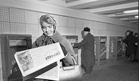 Но поразило девушку наличие на входе не только привычных автоматов, в которых можно было купить газеты, но и то, что пассажиры могли посетить книжные и аптечные киоски, выпить сок у стойки с уже почти исчезнувшими в будущем треугольными тубами, купить мороженое.