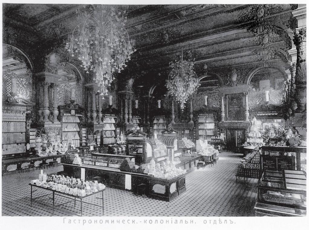 А ведь когда-то в трех торговых залах размещались пять отделов: фруктовый, кондитерский, колониально-гастрономический, бакалейный и специализированный отдел для хрусталя Баккара.