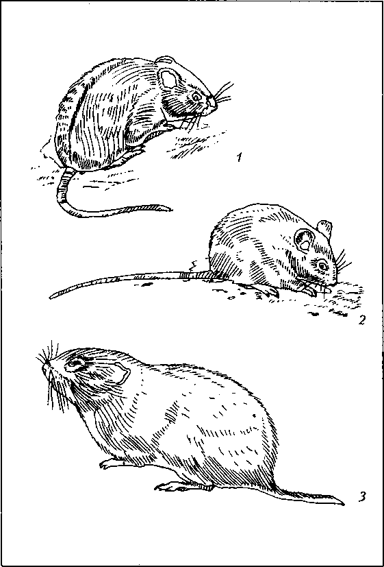 Мышевидные грызуны:1 – полевая мышь; 2 – домовая мышь; 3 – обыкновенная полевка