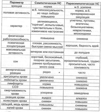 В разные возрастные периоды преобладает влияние той или иной системы. Например, младший возрастной период характеризуется ваготонией, а в подростковом возрасте преобладают симпатоадреналовые реакции. Для оценки влияния этих систем на организм можно воспользоваться табл. 1.