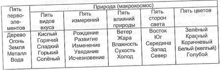 Таблица 2. Классификация аналогий макрокосмоса и микрокосмоса по концепции у-син.