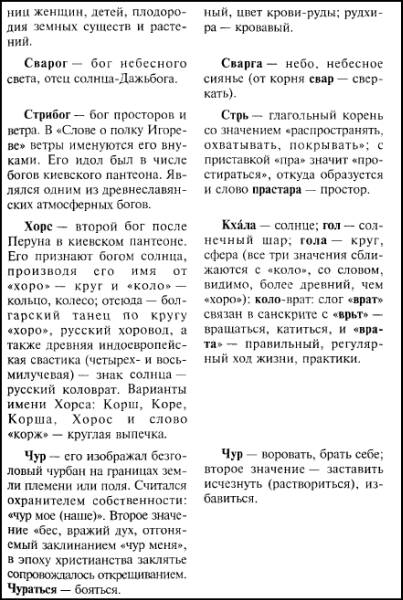 В круг языческих богов, доживших до христианства, в так называемый пантеон князя Владимира, или киевский пантеон, входили божества, имена которых тоже можно разъяснять или даже расшифровывать через санскрит, вероятно, близкие славянам арьи знали и этих богов.