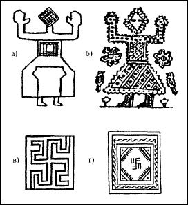 г) Рисунок на ритуальном сосуде. Индия