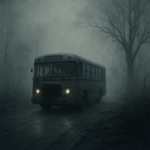 Мы подошли к огромной, угловатой машине, похожей на бронированного железного зверя. Она стояла, урча глухим мотором, и из её выхлопной трубы валил едкий, тёмный дым, смешиваясь с туманом. Внутри, за запотевшими стёклами, сидели люди. Только мужчины. Ни одного женского лица. Их взгляды были пустыми и отрешёнными. Большинство из них было чуть старше или младше меня, около двадцати лет. Лица покрывал шок и неверие. Изредка встречались более взрослые лица, лет тридцати-сорока, с глубокими морщинами у глаз и плотно сжатыми губами.