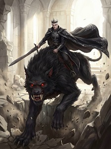 Она была покрыта грубой, чёрной шерстью, массивная, чудовищная. Из нижней челюсти торчали пара выгнутых желтоватых клыков – длиной с добрый короткий меч. Рык, который она издала, вибрировал в груди, заставлял зубы лязгать, а кровь стынуть в жилах. Это было не просто чудовище. Это было нечто древнее, яростное, смертоносное. Два горящих красных глаза смотрели из тьмы – будто сама бездна заглянула в душу.