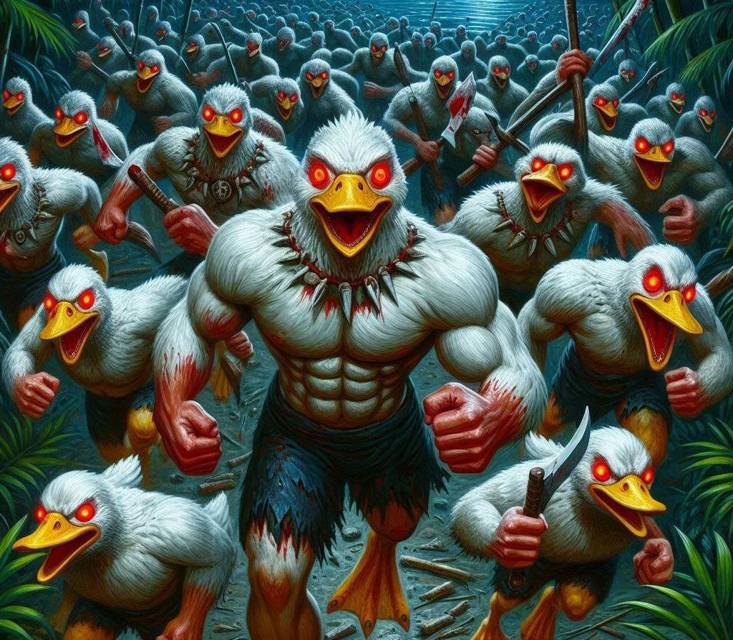 Западные ворота разлетелись в щепки, треск заглушил даже боевые крики. Дакханы хлынули внутрь сплошным потоком. Эти твари выглядели как нечто среднее между птицами и людьми. Их тела, покрытые жёсткими белыми перьями, лоснились от пота, а мускулы перекатывались под кожей, словно змеи. Крыльев у них не было. Эволюция лишила их возможности летать, но дала нечто большее – крупный размер и силу. Дакханы чем-то напоминали персонажей из детских «Утиных историй», которые годами жрали стероиды и прошли через адскую гормональную терапию. Только вот взгляд у тварей был отнюдь не мультяшный – хищный и сосредоточенный.