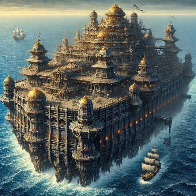 Архитектура «Фатума», мягко говоря, удивляла: восточная пышность дворцов (по меркам людей) сменялась брутальной военной мощью, а затем перетекала в дерзкое пиратское безумие. Золотые купола ловили утренние лучи Солариса, разбрасывая ослепительные блики по волнам. Ажурные балконы и арки, вырезанные с филигранной точностью, делали даже самые роскошные дворцы аристократов похожими на скромные лачуги.