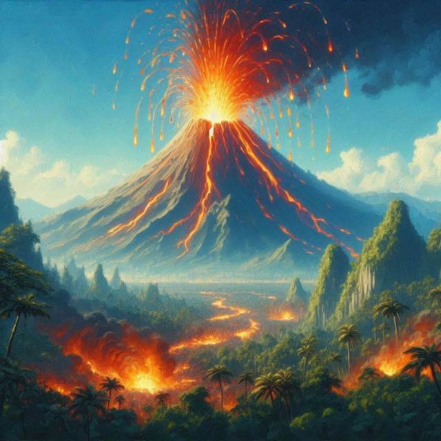 Поток магмы, словно огненная змея, извивался и полз следом, пожирая всё на своём пути. Деревья вспыхивали, как спички, камни трескались от жара.