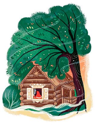 Пошел крестьянский мальчик Ванятка в лес за грибами – и заблудился. Целый день ходил, устал очень. И совсем было отчаялся, как увидел вдруг под деревом избушку небольшую. Можно сказать, даже маленькую, почти игрушечную. Крыша листьями прошлогодними крыта, окошко маленькое. А через окошко видно: сидит в избушке старушка, прядет. Обрадовался Ванятка, от радости даже забыл удивиться. Постучал легонько по крыше: «Добрая бабушка, помоги заплутавшему…» А старушка из избушки на крыльцо выскочила – и вдруг принялась расти. Растет-растет – чуть ли не с дерево стала – и руки к Ванятке тянет. И они тоже вытягиваются будто змеи, вот-вот Ванятку схватят. Бросился он бежать, а руки за ним тянутся, правая уже за ногу мальчишку зацепила…