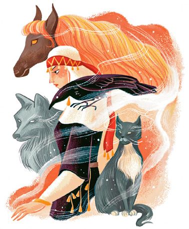 Посреди лесов дремучих, посреди песков зыбучих, за реками бегучими, болотами стоючими живет Варда-Вардея… Изба у нее в три окна, в три двери, крыша тесовая-еловая. А стоит изба на четырех костях – мертвых головах. Войдет Варда-Вардея в одну дверь старухой, а выйдет в другую красной девицей. Войдет красной девицей в одну дверь – выйдет из другой бог знает кем. Сто лиц у Варды-Вардеи, сто имен. Служат ей кобылица – золотая грива, волчица – серебряная холка, кошка – лунные глаза, ворон – мудрые речи.