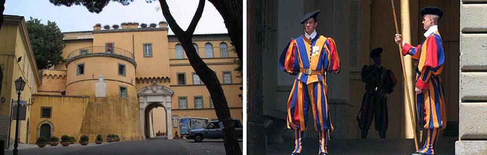 (папская резиденция в Кастель Романи и швейцарские гвардейцы на ее охране)