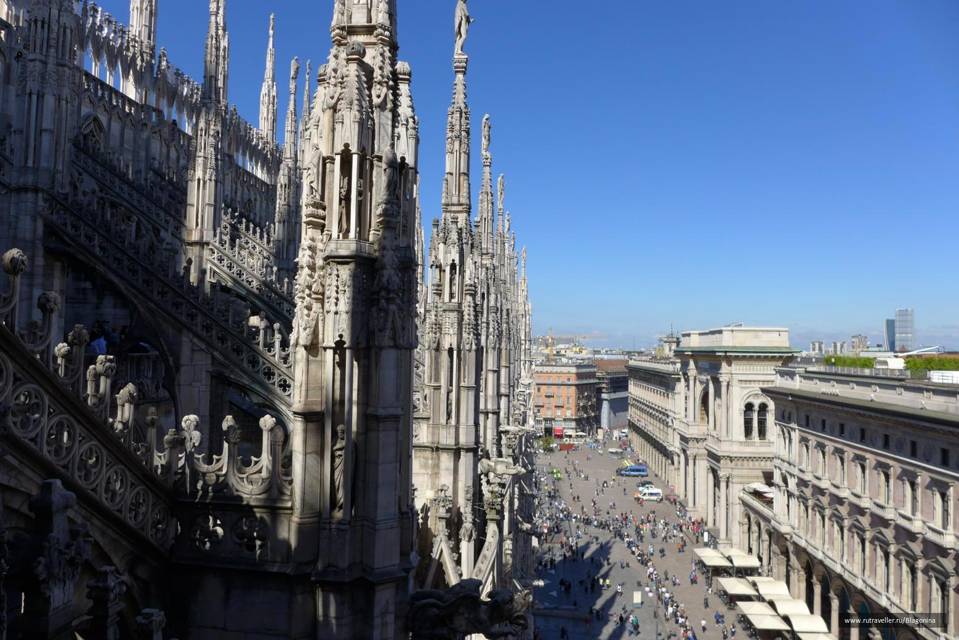 Откровенно хорошо чувствовать себя героем Италии. Ну и что, что оплеванным героем! Но героем-то однозначно! Где у меня эти чувства прорезались? Да в славном городе Милане. Захотелось мне попить кофе на смотровой площадке Дуомо. На тебе, плиз! Дуомо, чтобы вы понимали. это местное название знаменитого на весь мир Миланского собора – одного из главных достопримечательностей этого многолюдного города. И вот принцу-освободителю, творцу независимой Италии поставили столик, на который водрузили кофейник с дымящимся свежайшим напитком и дали возможность любоваться видом на Соборную площадь с верху вниз.