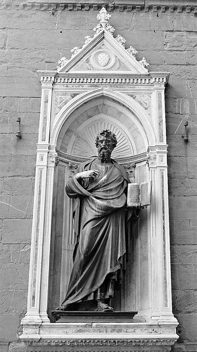 При жизни Донателло нововведением стала дифференцированная выплата мастерам одной квалификации за одинаковую работу – то есть признание их личных достоинств. Следовали следующему алгоритму действий: прежде чем затеять какой-либо проект на исполнение одним или несколькими мастерами устраивался конкурс, в жюри которого в большом числе входили профессионалы, они распределяли обязанности и начисляли гонорар. Например, строительная комиссия собора Санта-Мария-дель-Фьоре для изготовления статуй евангелистов подрядила на равных условиях скульпторов Никколо Ламберти, Нанни ди Банко, Донателло, Бернардо Чуффаньи. При приеме заказа и окончательном расчете были скорректированы денежные вознаграждения: Донателло за статую сидящего Иоанна Богослова поощрили выплатой 160 флоринов, не получивший одобрения Ламберти довольствовался 130. Неудивительно, что Никколо Ламберти вскоре после этого отправился в Венецию искать менее требовательных, традиционных в своих вкусах заказчиков. Система суровая по отношению к ранимым творческим натурам, но справедливая: образ сидящего евангелиста Иоанна Донателло – символ доблести и благородства, по своей внушительности и мощи сопоставим со статуей «Моисей» Микеланджело Буонарроти.