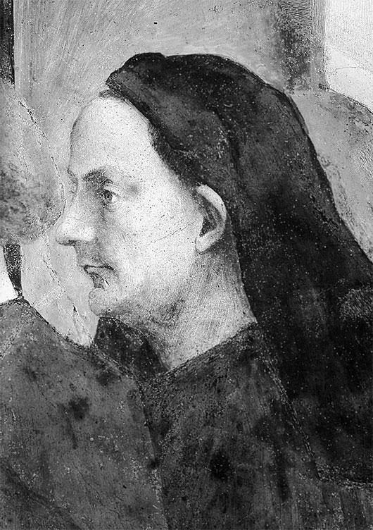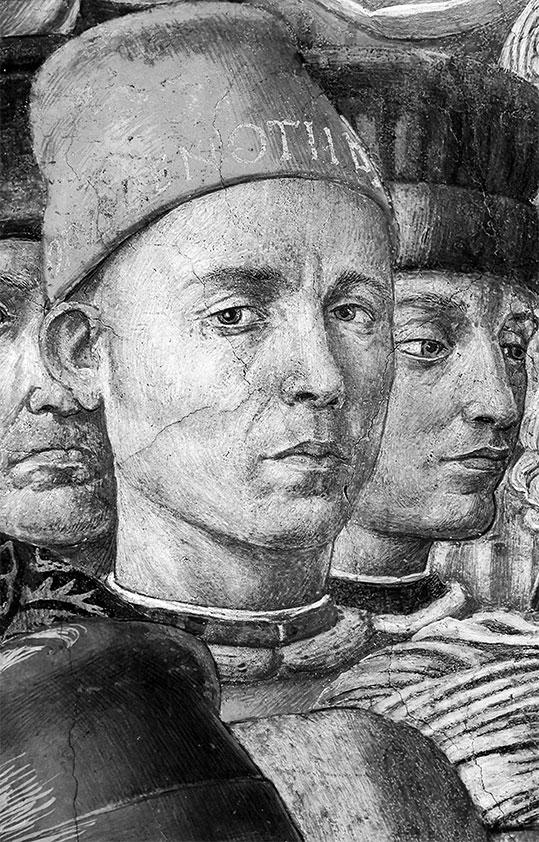 Беноццо Гоццоли, «Шествие волхвов», фреска, 1459–1460. Флоренция, Капелла Медичи в палаццо Медичи-Риккарди. Фрагмент (с автопортретом Беноццо Гоццоли).