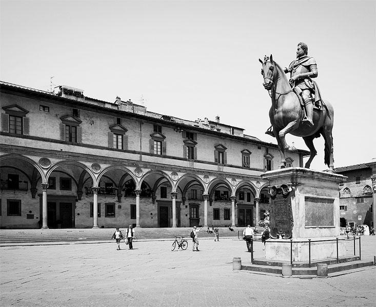 Филиппо Брунеллески, Больница Невинных, 1419–1426. Вид площади Сантиссима Аннунциата. Флоренция.