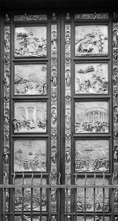 Лоренцо Гиберти, Восточные (Райские) двери для баптистерия Сан-Джованни, позолоченная бронза, 599×462, 1425–1452, Флоренция.