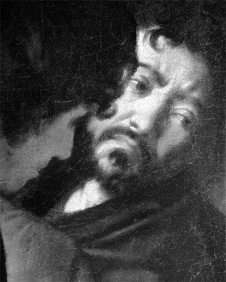 Микеланджело Меризи да Караваджо, «Мученичество святого Матфея», холст, масло, 323×343, 1599–1600. Рим, церковь Сан-Луиджи-деи-Франчези, Капелла Контарелли. Фрагмент (с автопортретом).