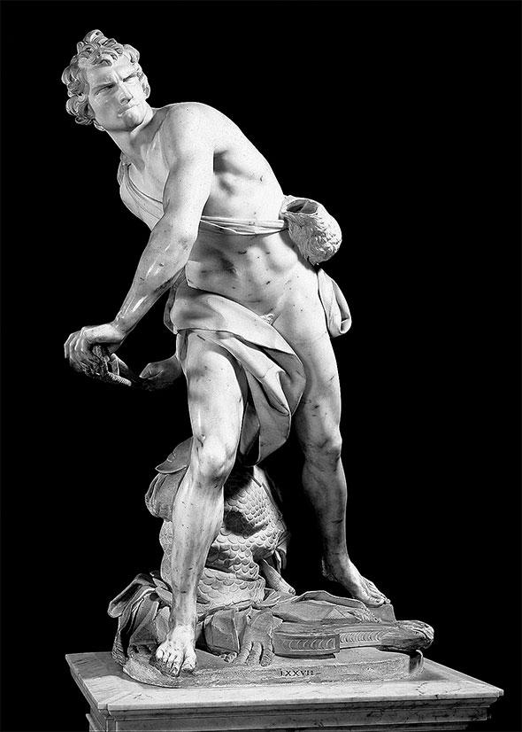 Джанлоренцо Бернини, «Давид», мрамор, высота 170, 1623–1624. Рим, Галерея Боргезе.