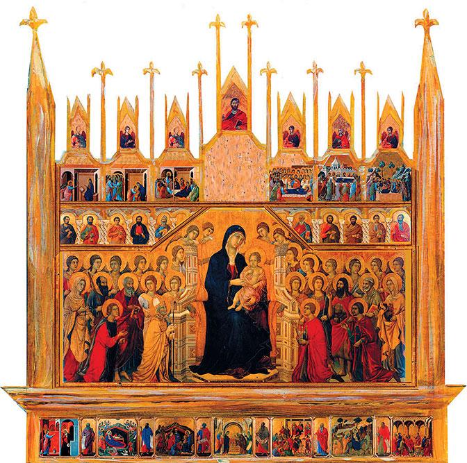 Дуччо ди Буонинсенья, «Маэста», дерево, темпера, 214×412, 1308–1311, Сиена, Museo dell'Opera del Duomo.