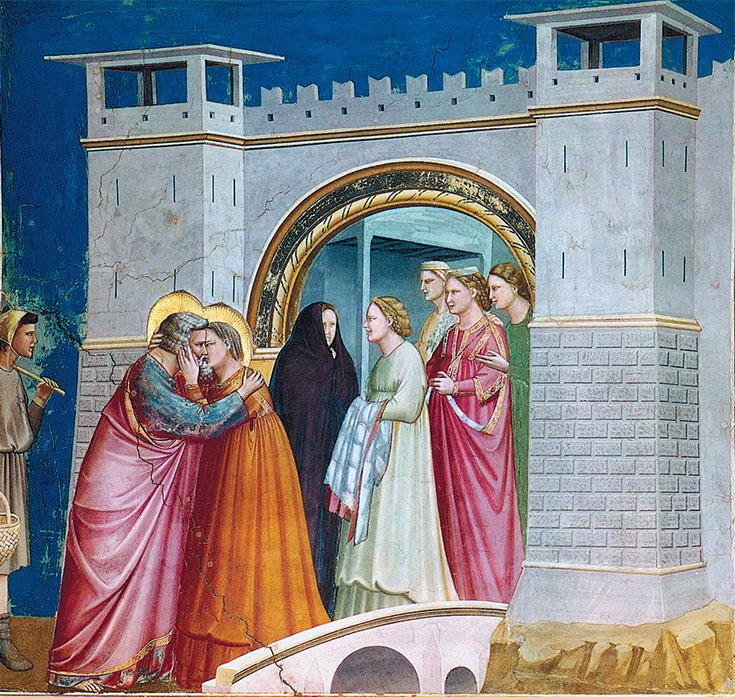 Джотто ди Бондоне, «Встреча у Золотых ворот», 1303–1306, фреска, 200×185, Падуя, Капелла Скровеньи дель Арена