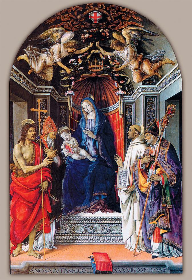 Филиппино Липпи, «Алтарный образ» для салона Дуэченто палаццо Веккио, дерево, темпера, 355×255, 1486. Флоренция, Галерея Уффици