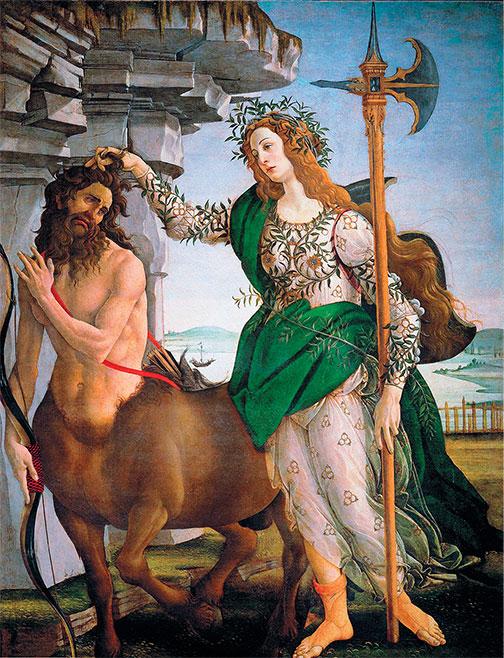 Сандро Боттичелли, «Паллада и кентавр», холст, темпера, 205×147,5, около 1482. Флоренция, Галерея Уффици